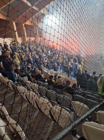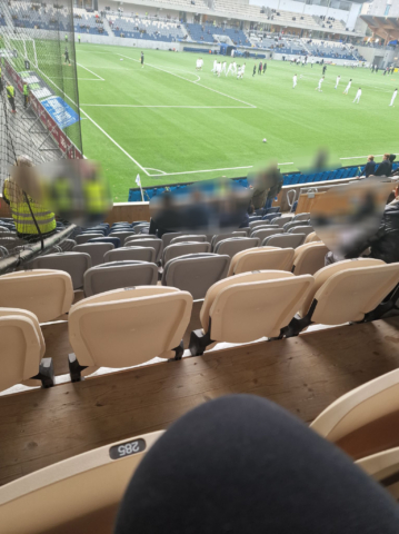 Var dags för mig att kolla fel, trodde vi satt på 151 152, men egentligen 351 352. Vi fick sitta kvar, ett sällskap. Såg ett bra alternativ. Dom leta efter lediga stolar bredvid oss. Stor eloge till dom. En fick tyvärr stå halva matchen, tror inte det gick nöd på hen.