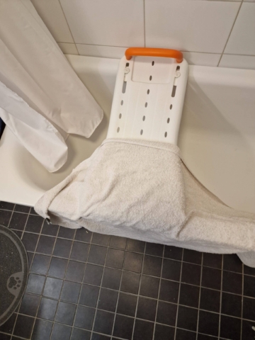Sittbrädan som fanns med i bilderna undrar nog några av er, vad är det? Jo så att nu ska ni få höra… Jag har ett badkar och idag är det väl inte jätte vanligt med badkar? Men istället för att ta bort badkaret så fick jag fick låna ett dunder hjälpmedel som faktiskt används än idag och säkert något år till? Men är typ en stol i badkaret som går över själva badkaret och funkar som en duschstol. Praktiskt va? Utan den vete sjutton hur jag skulle ha duschat? Idag kan jag ju stå och duscha men så har det inte alltid varit!